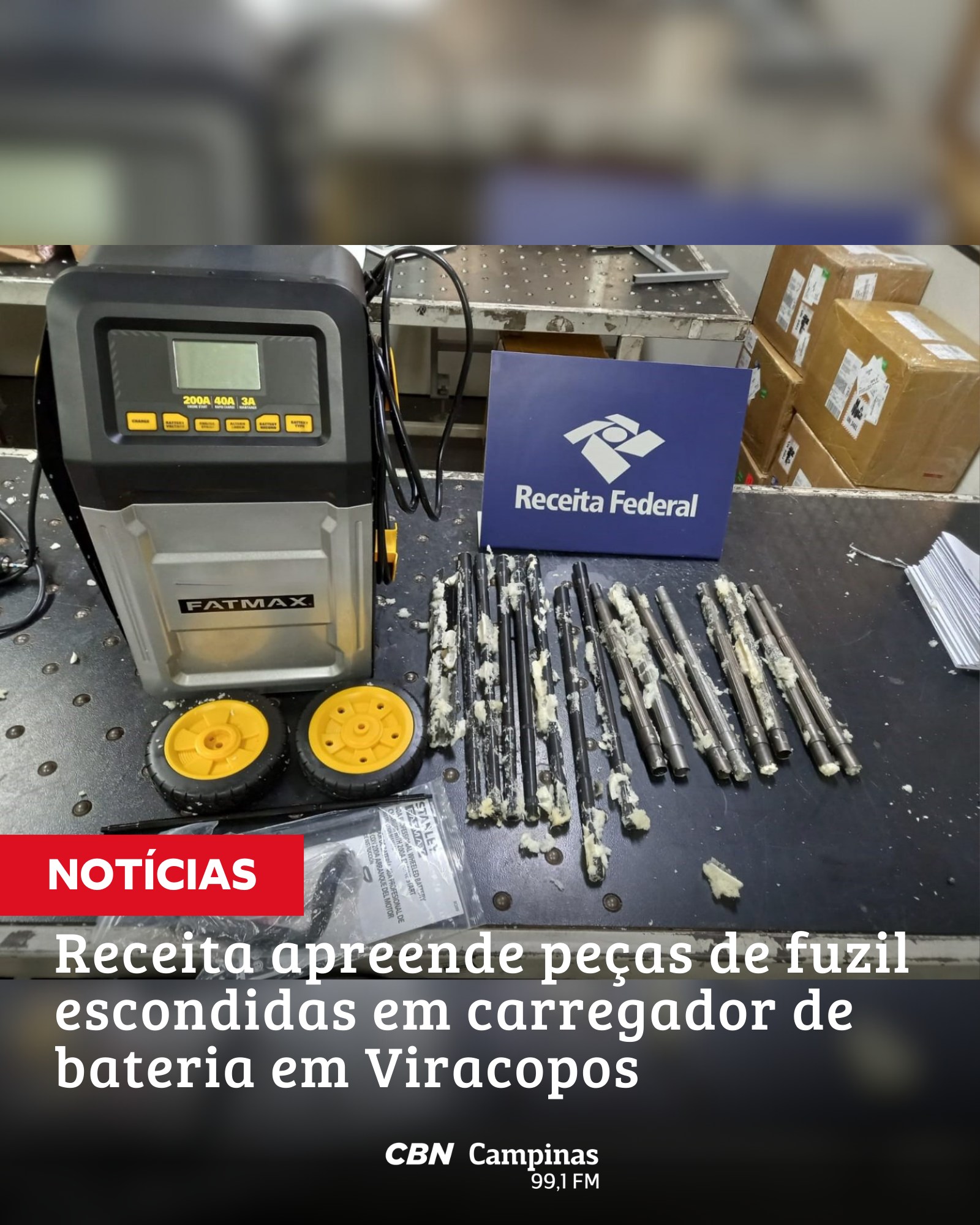 A Receita Federal apreendeu partes e peças de fuzis durante uma fiscalização de remessas internacionais realizada na Alfândega do Aeroporto de Viracopos, em Campinas. A ação ocorreu no dia 26 de fevereiro, mas foi divulgada apenas agora pelo órgão.
