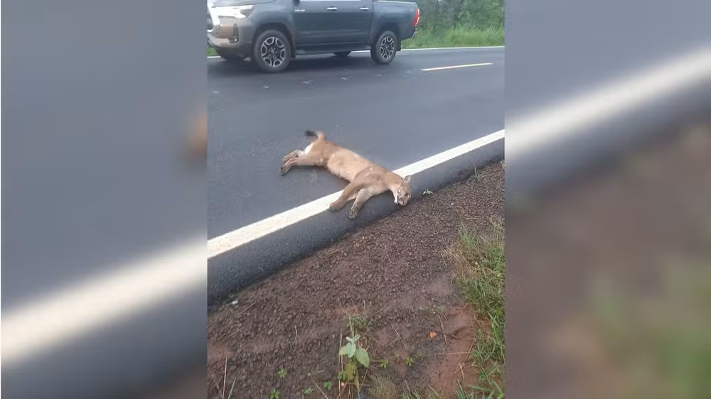 Uma onça-parda morreu após ser atropelada no fim da tarde de segunda-feira (9) em uma estrada vicinal na zona rural de Jales, no interior de São Paulo.