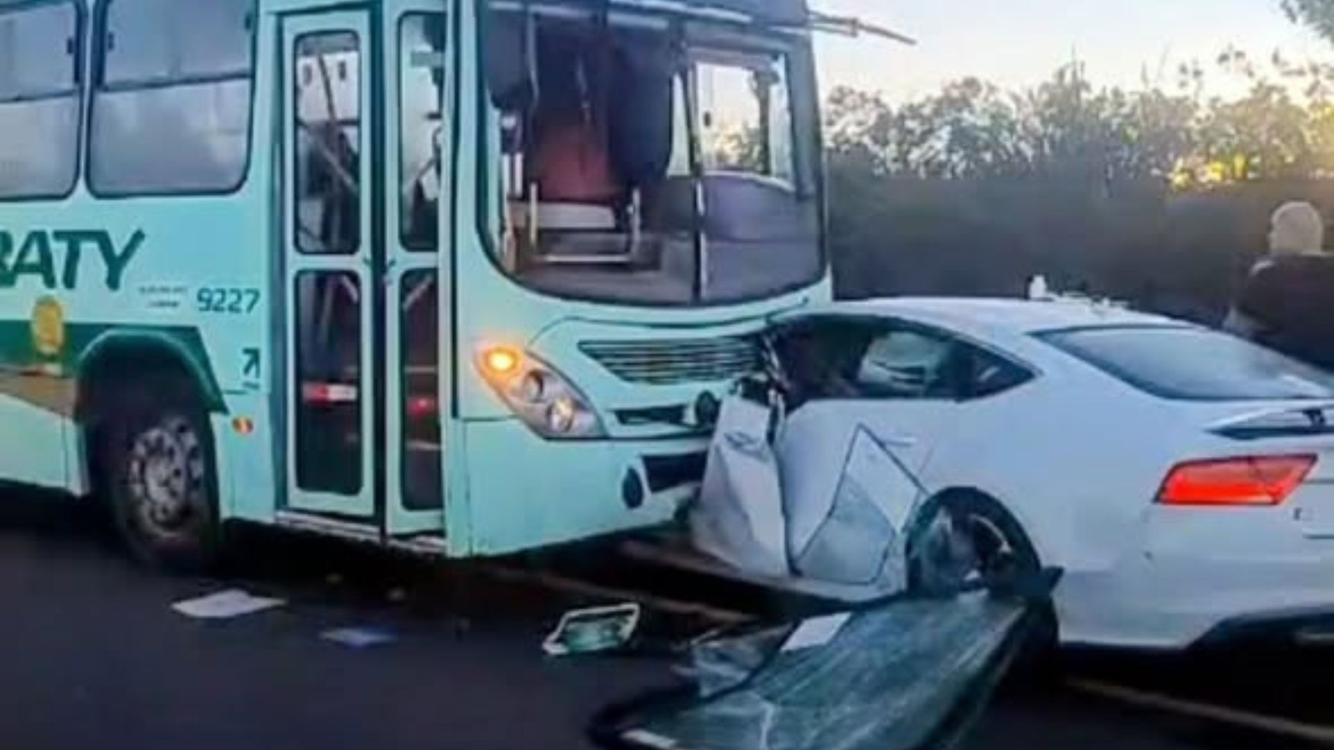 Um grave acidente envolvendo um veículo Audi e um ônibus foi registrado na manhã deste sábado (14) na Rua Manoel Borba, via que liga os municípios de Araraquara a Américo Brasiliense. A colisão frontal deixou o carro completamente destruído na parte dianteira e resultou no ferimento do condutor do veículo de passeio.