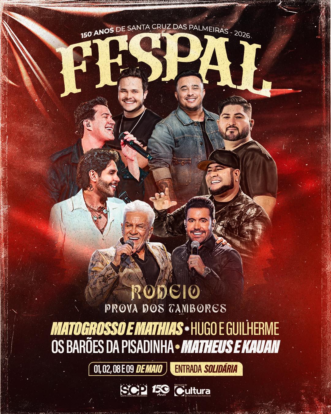 A cidade de Santa Cruz das Palmeiras se prepara para viver uma edição histórica da Fespal em 2026. Comemorando os 150 anos do município, o evento chega com uma programação completa e reforçada, prometendo reunir público de toda a região em uma grande celebração.