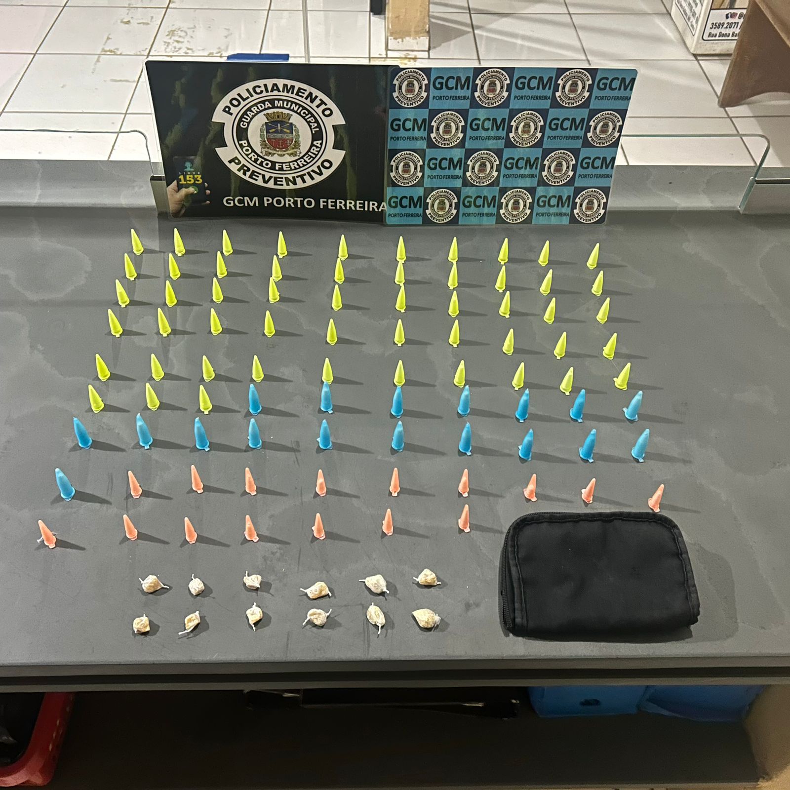 No bolso da jaqueta do homem, os guardas localizaram um estojo contendo 87 eppendorfs de cocaína e 12 pedras de crack. Questionado sobre o material, ele confessou que havia assumido recentemente o ponto para realizar a venda das drogas.