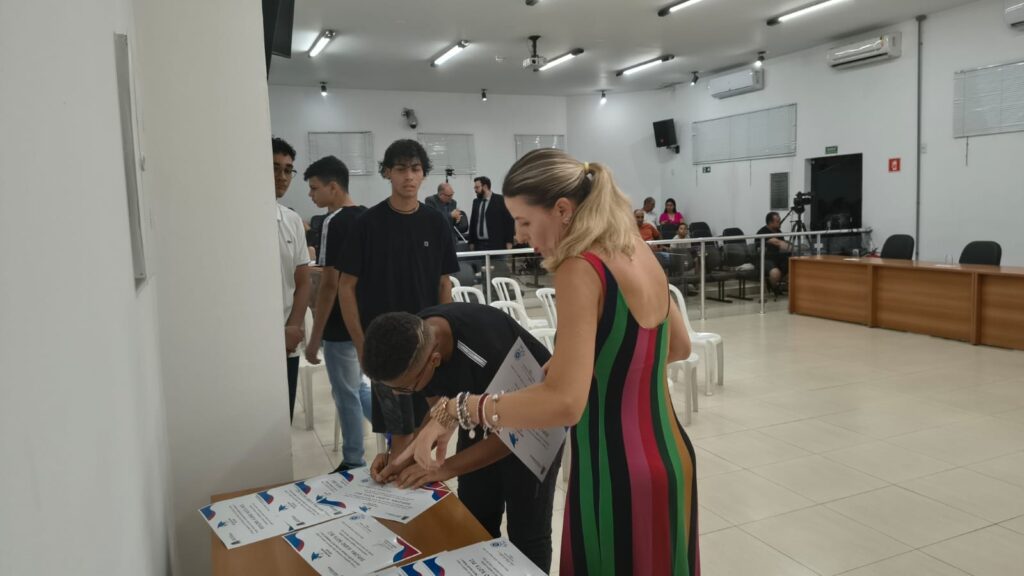 O evento aconteceu no dia 18 de março, às 18h30, na Câmara Municipal de Porto Ferreira, reunindo alunos contemplados, gestores escolares e familiares.