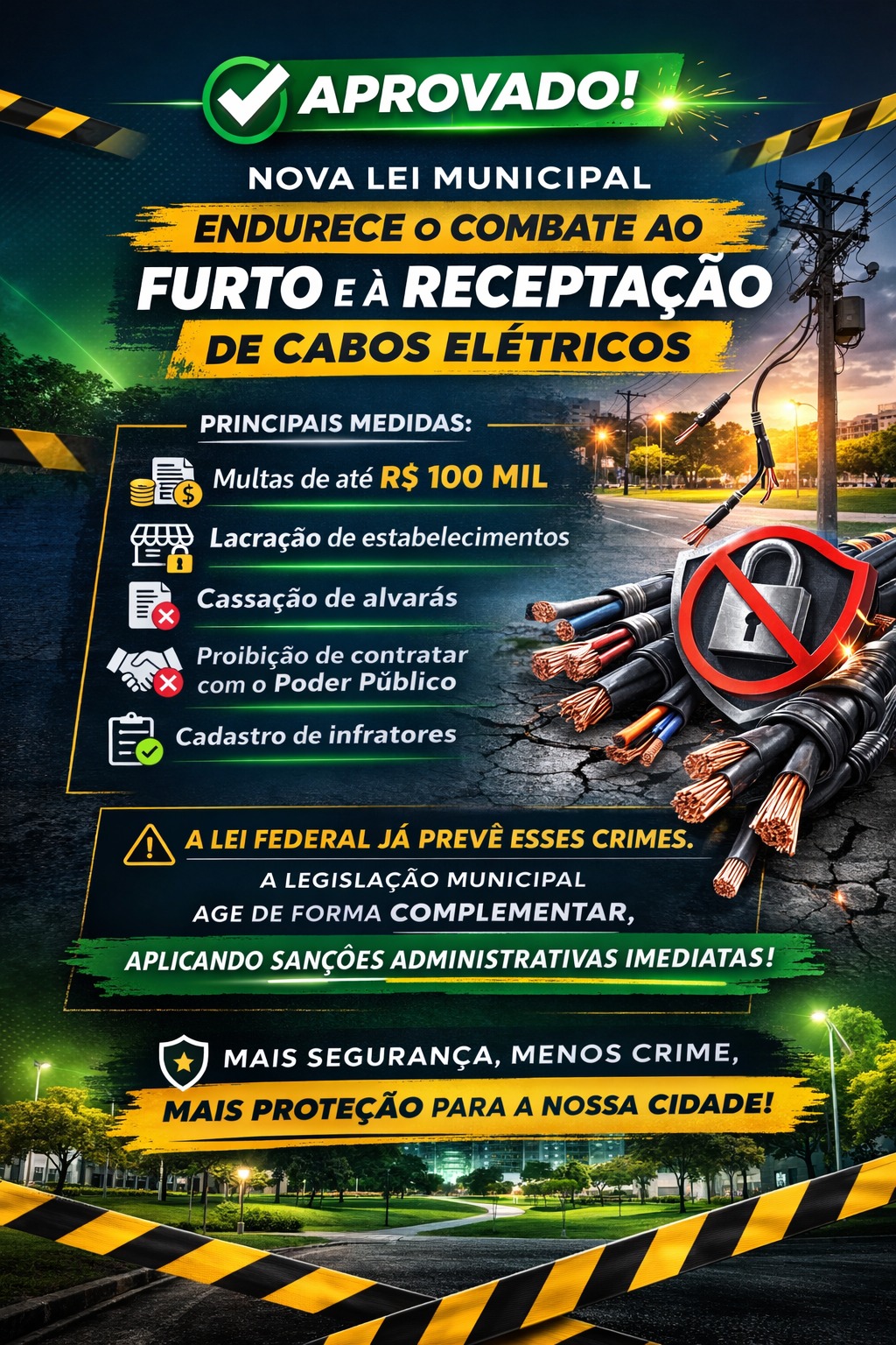 A aprovação unânime reforça o posicionamento do Legislativo municipal em favor da segurança pública e da preservação do patrimônio coletivo, com foco na proteção dos serviços e no bem-estar da população.