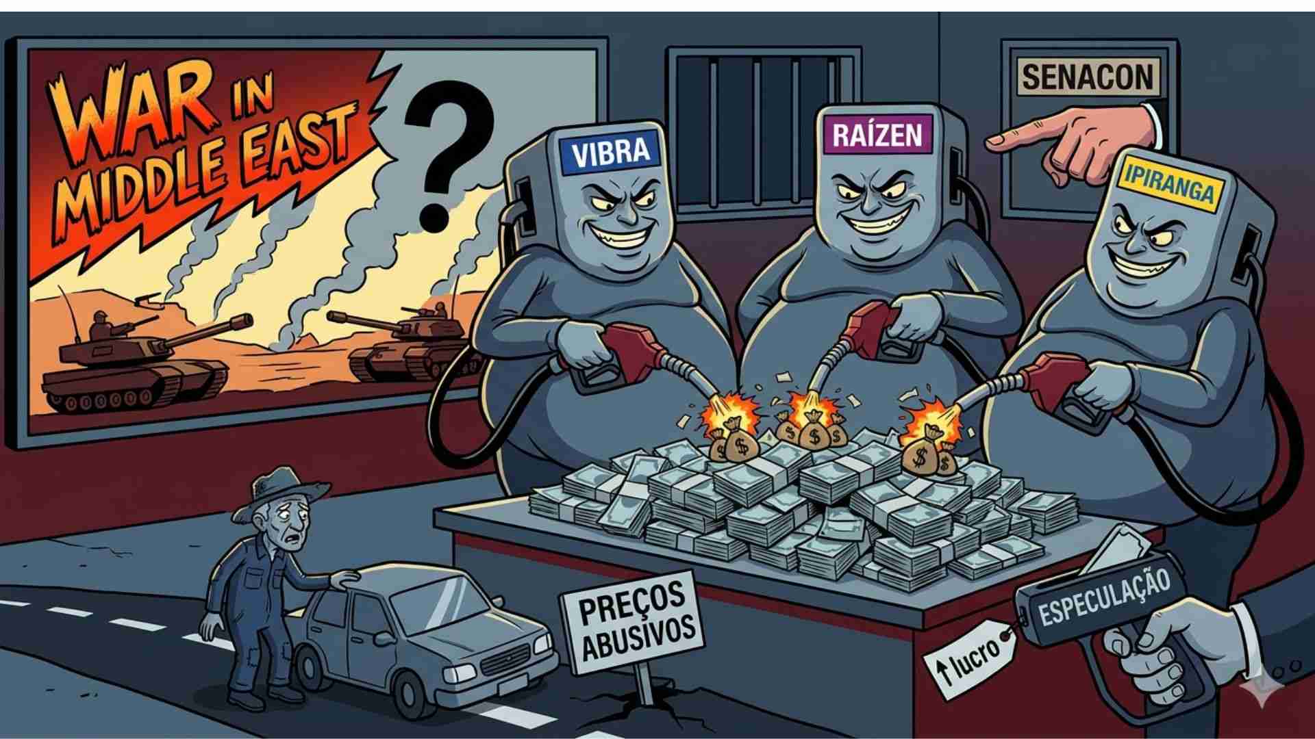 Sob a sombra da guerra, Vibra Energia, Raízen e Ipiranga, que controlam sozinhas cerca de 60% do mercado nacional, são agora alvo de uma ofensiva do Ministério da Justiça (Senacon e Polícia Federal) para explicar o que parece ser um movimento clássico de especulação abusiva.