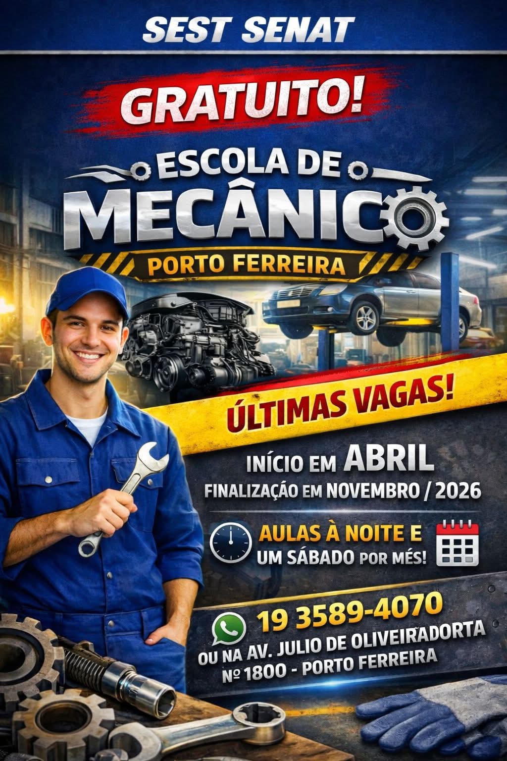 Moradores de Porto Ferreira e região têm uma nova oportunidade de qualificação profissional. O SEST SENAT está com as últimas vagas abertas para o curso gratuito de Mecânica Profissional.