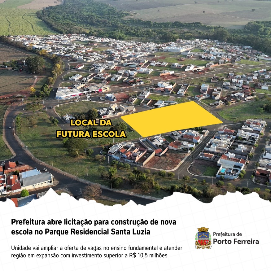 O prefeito André Braga anunciou a licitação para a construção de uma nova escola no Parque Residencial Santa Luzia. O processo eletrônico nº 03/2026 prevê a contratação de empresa especializada para executar a obra, estimada em R$ 10,5 milhões, com recursos do Governo do Estado e contrapartida do município.
