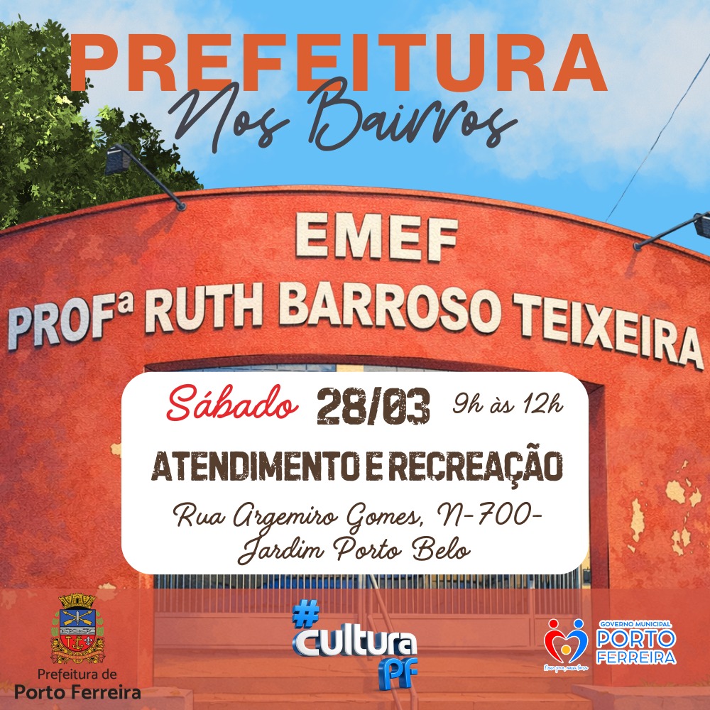 A Prefeitura de Porto Ferreira promove neste sábado (28), das 9h às 12h, mais uma edição do programa Prefeitura nos Bairros. Desta vez, a iniciativa será realizada no Jardim Porto Bello, com atendimento na Emef Professora Ruth Barroso Teixeira.