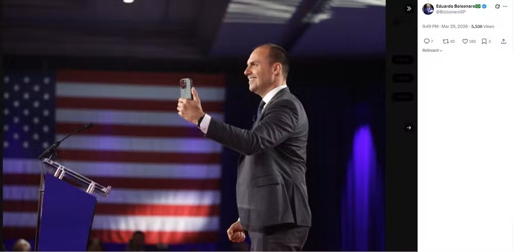 Eduardo rebateu críticas e disse que a declaração foi mal interpretada. Ele também é alvo de investigação no STF por suspeita de tentar influenciar decisões judiciais envolvendo o pai.