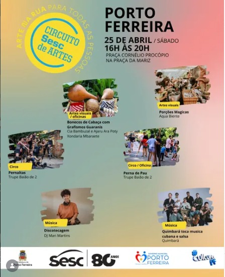 A população de Porto Ferreira poderá aproveitar uma tarde repleta de cultura e entretenimento no próximo dia 25 de abril, sábado. A programação acontece das 16h às 20h, na Praça Cornélio Procópio, conhecida como Praça da Matriz.