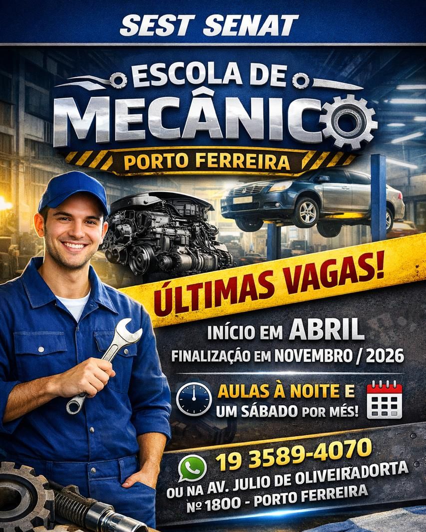 Moradores de Porto Ferreira têm uma nova oportunidade de qualificação profissional na área automotiva. A Escola de Mecânico do SEST SENAT está com as últimas vagas abertas para um curso voltado à formação prática e teórica de novos profissionais do setor.