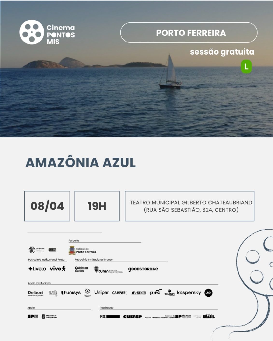 A população de Porto Ferreira terá mais uma oportunidade de acesso à cultura nesta quarta-feira, 8 de abril, com a exibição gratuita do documentário “Amazônia Azul”. A sessão integra o projeto Pontos MIS, realizado em parceria com o Museu da Imagem e do Som de São Paulo.