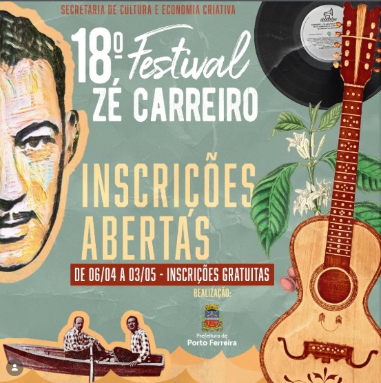 A Secretaria de Cultura e Economia Criativa da Prefeitura de Porto Ferreira anunciou a realização do 18º Festival de Música Raiz e Sertaneja Zé Carreiro, uma homenagem a Zé Carreiro, referência no estilo caipira.