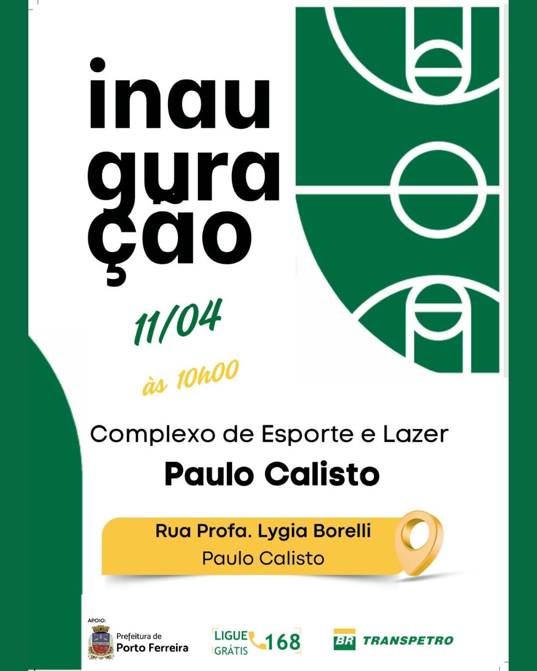 A Prefeitura de Porto Ferreira realiza na manhã deste sábado (11), às 10h, a inauguração do Complexo de Esporte e Lazer Paulo Calisto, localizado na entrada do Parque Residencial Paulo Calisto, na Zona Norte da cidade.