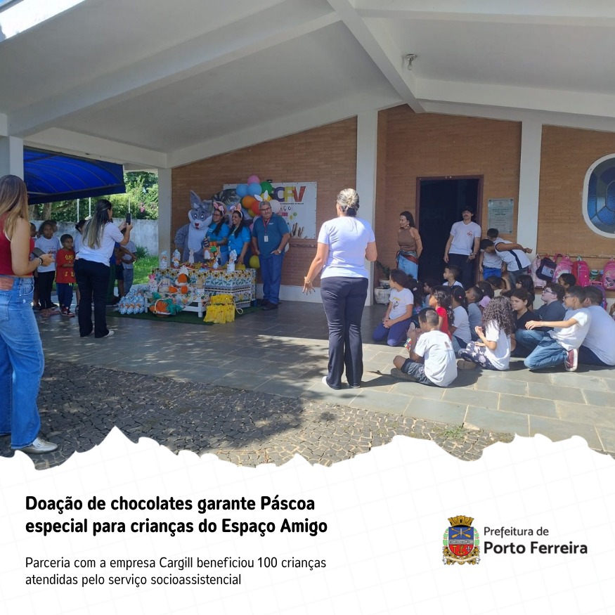 O Serviço de Convivência e Fortalecimento de Vínculos (SCFV) Espaço Amigo, de Porto Ferreira, realizou uma ação especial de Páscoa que levou alegria e integração às crianças atendidas pelo programa. A iniciativa contou com a doação de chocolates feita pela empresa Cargill, contribuindo para tornar a data ainda mais significativa em 2026.