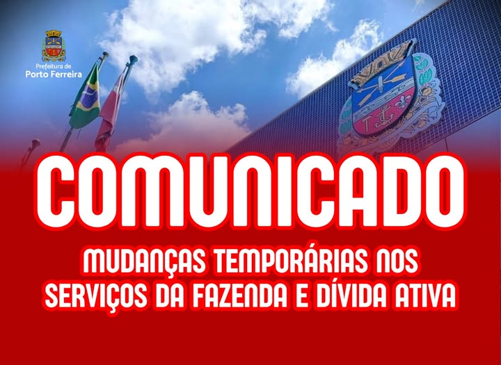 A Prefeitura de Porto Ferreira informou que realizará a migração de sistemas na Secretaria de Fazenda e Planejamento e na Dívida Ativa, o que provocará alterações temporárias no atendimento ao público. Os serviços ficarão indisponíveis, tanto presencialmente quanto pela internet, entre os dias 1º e 15 de maio.