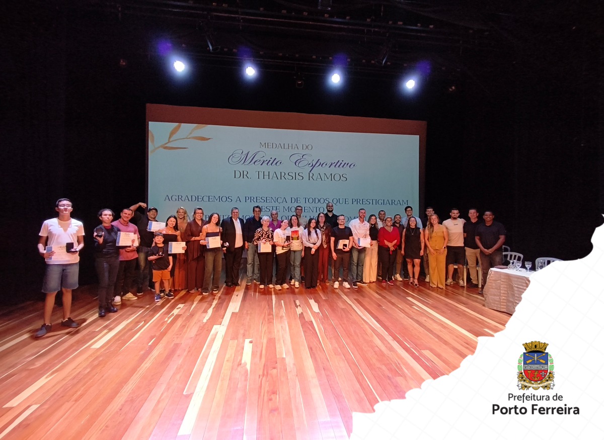 A Prefeitura de Porto Ferreira realizou na noite de quinta-feira (17), no Teatro Municipal Gilberto Chateaubriand, a entrega da Medalha do Mérito Esportivo Dr. Tharsis Ramos 2026. A cerimônia, organizada pela Secretaria de Esportes e Lazer e pelo CMEL, reuniu autoridades, homenageados e a comunidade.