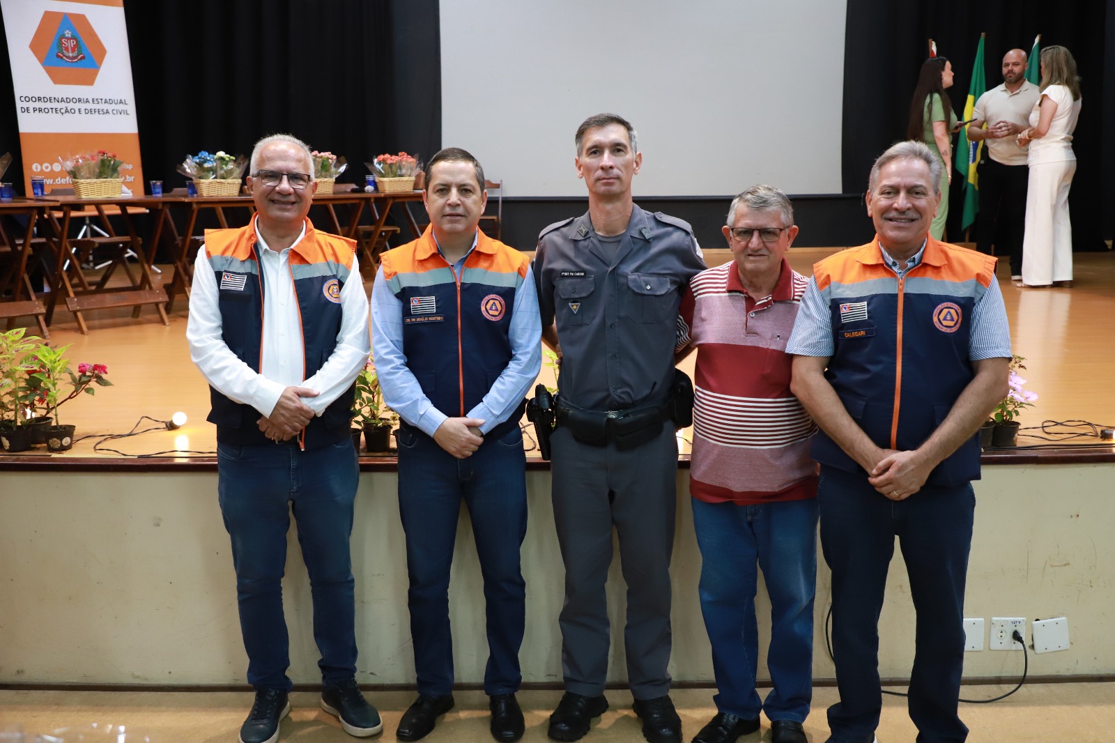 Entre as autoridades presentes estavam o prefeito de Santa Rita do Passa Quatro, o coronel da Polícia Militar Rinaldo de Araújo Monteiro, que também atua como coordenador estadual de Proteção e Defesa Civil, além do 1º sargento Carlos Alexandre Cardim, do 38º BPM/I. Também participaram o vereador Wanderley Kill e o coordenador regional da Defesa Civil, Amarildo Calegari.