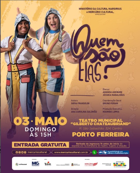 Um espetáculo leve, divertido e cheio de energia chega a Porto Ferreira no próximo dia 3 de maio, com proposta voltada para toda a família. A peça “Quem são elas?” será apresentada às 15h, no Teatro Municipal “Gilberto Chateaubriand”, com entrada gratuita.