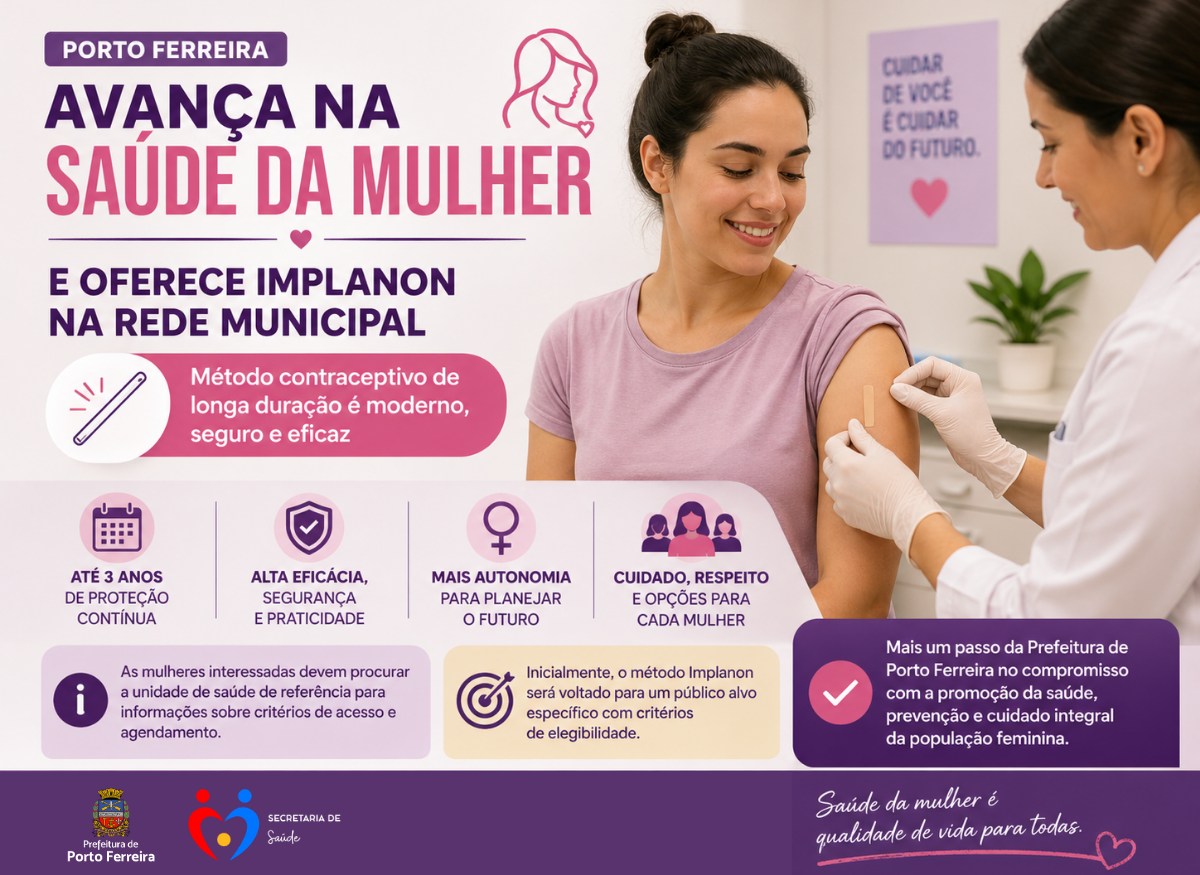 A Prefeitura de Porto Ferreira, por meio da Secretaria de Saúde, deu mais um passo na ampliação dos serviços voltados à saúde da mulher ao disponibilizar o Implanon na rede municipal. O método contraceptivo, considerado moderno, seguro e eficaz, passa a integrar as opções oferecidas gratuitamente à população.
