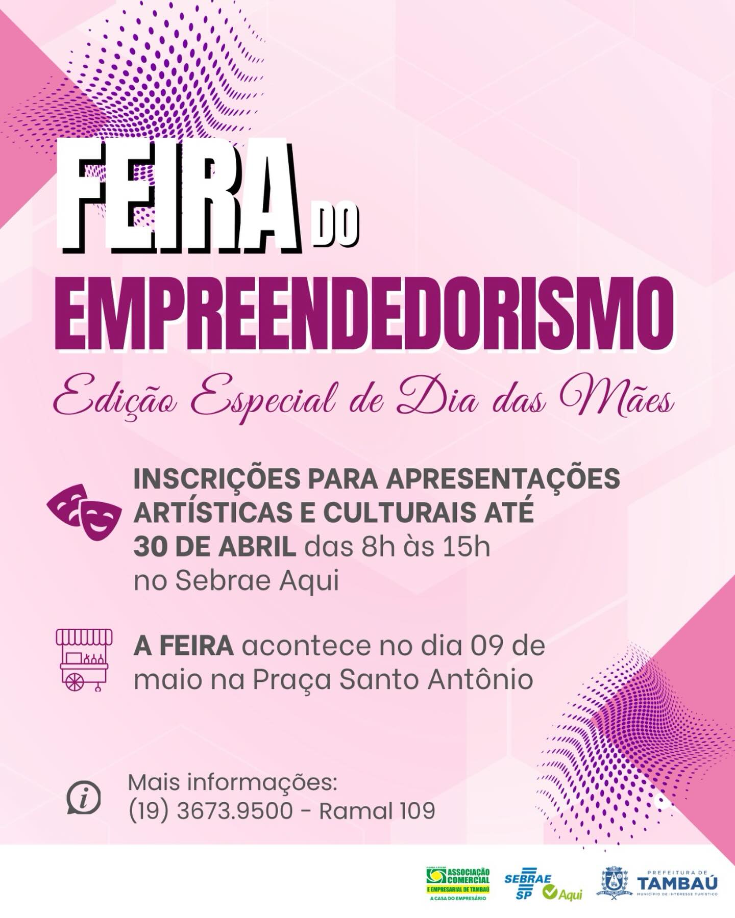 A Prefeitura de Tambaú abriu inscrições para coletivos e grupos culturais que desejam participar da Feira do Empreendedorismo em uma edição especial dedicada ao Dia das Mães. A proposta é integrar arte e economia criativa, valorizando talentos locais e ampliando a programação do evento.