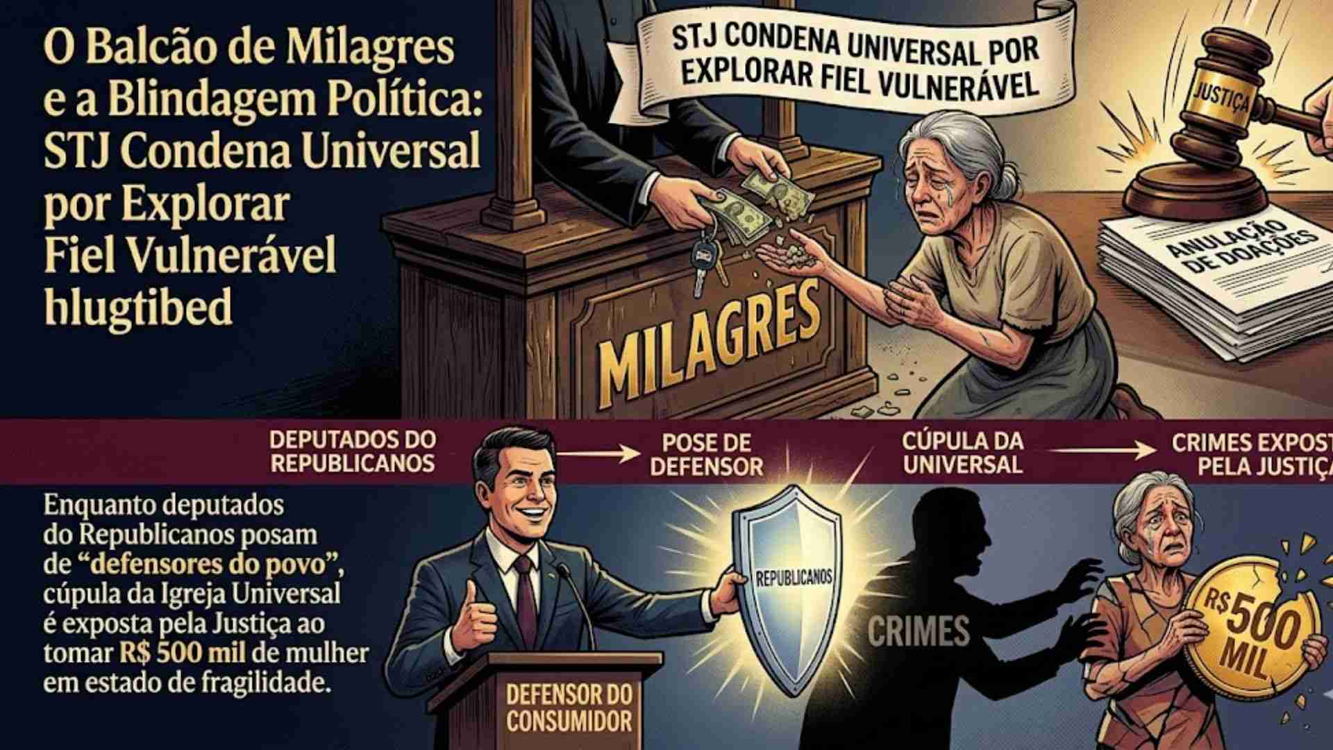 Entretanto, quando o “abuso de consumo” ocorre dentro dos templos, através da venda de promessas metafísicas em troca de patrimônio real, a bancada se fecha em copas. A manutenção da sentença pelo STJ é um golpe na narrativa de idoneidade da instituição, provando que a “liberdade religiosa” não é um salvo-conduto para o enriquecimento ilícito às custas do desespero alheio.