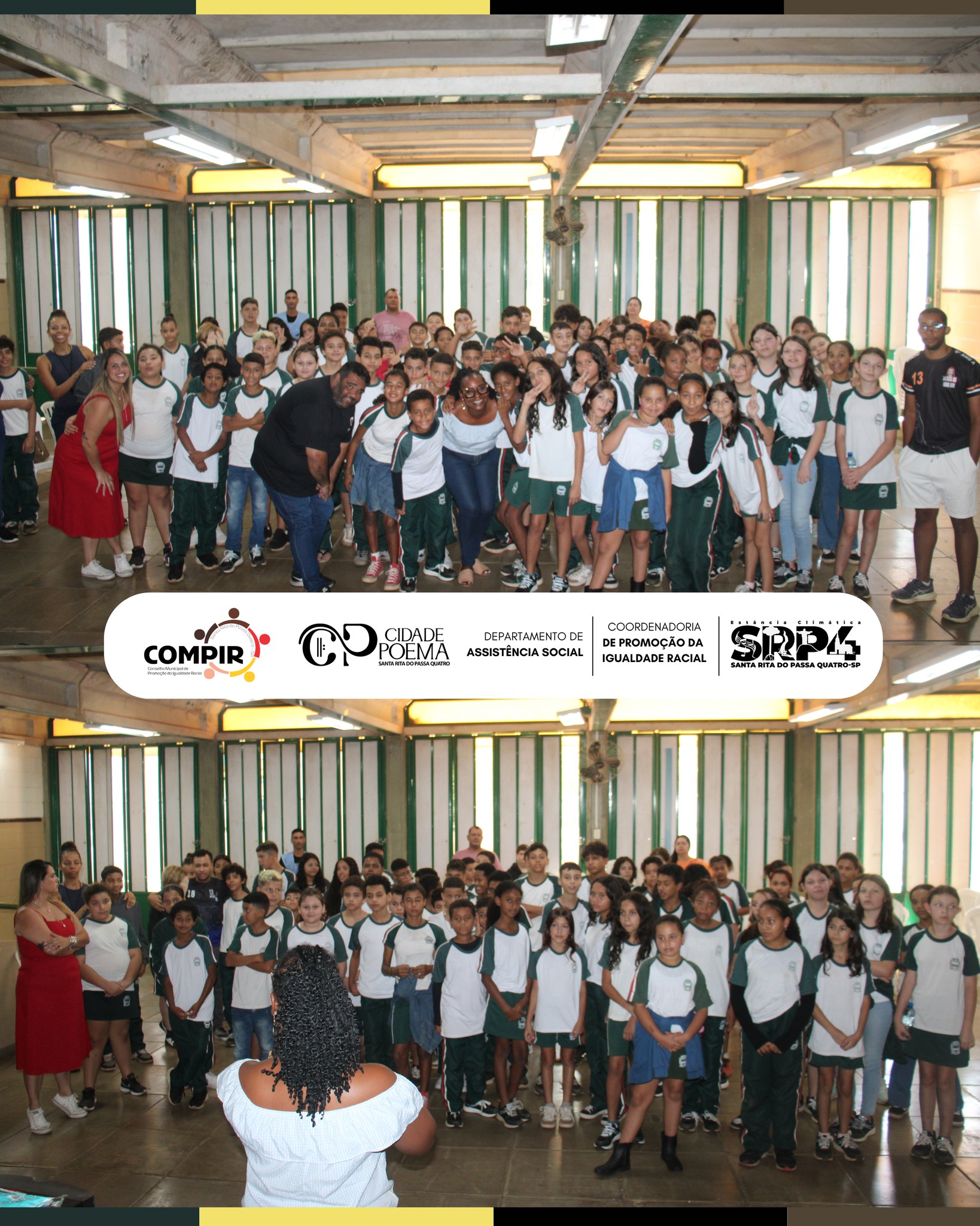 Estudantes do Ensino Fundamental II da EMEF Laura Suriani Barbuio, o CAIC, em Santa Rita do Passa Quatro, participaram nesta quarta-feira, 29 de abril, de uma palestra voltada ao enfrentamento do bullying racial no ambiente escolar. Com o tema “Respeito não é opção: Bullying Racial no Ambiente Escolar”, a ação incentivou o diálogo e a conscientização entre os alunos.
