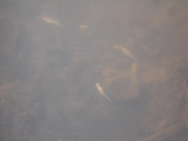 O baixo nível do rio possibilitou ver dezenas de peixes mortos submersos entre as pedras.