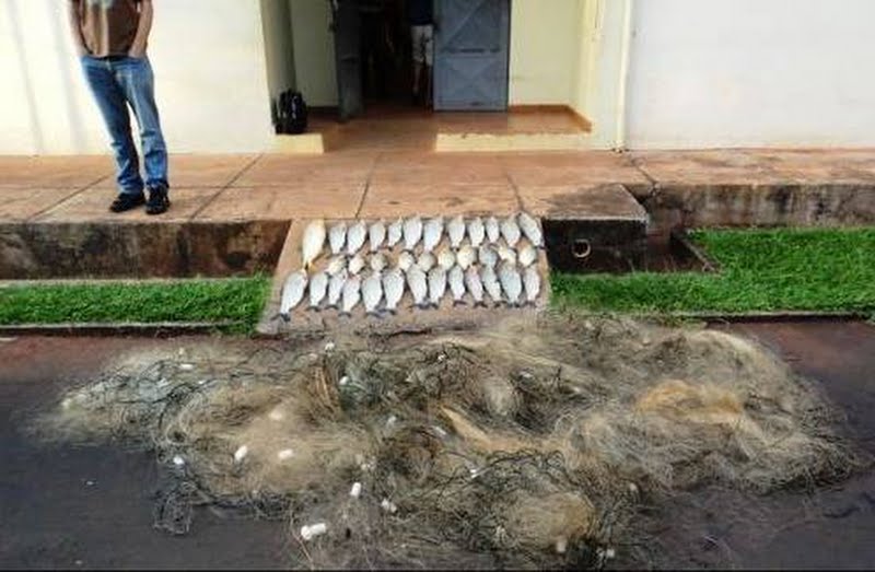 Com os suspeitos os policiais apreenderam 300 metros lineares de rede de pesca e a quantia de 25 kg de peixes (dentre eles dourados, curimbatás e piranhas).