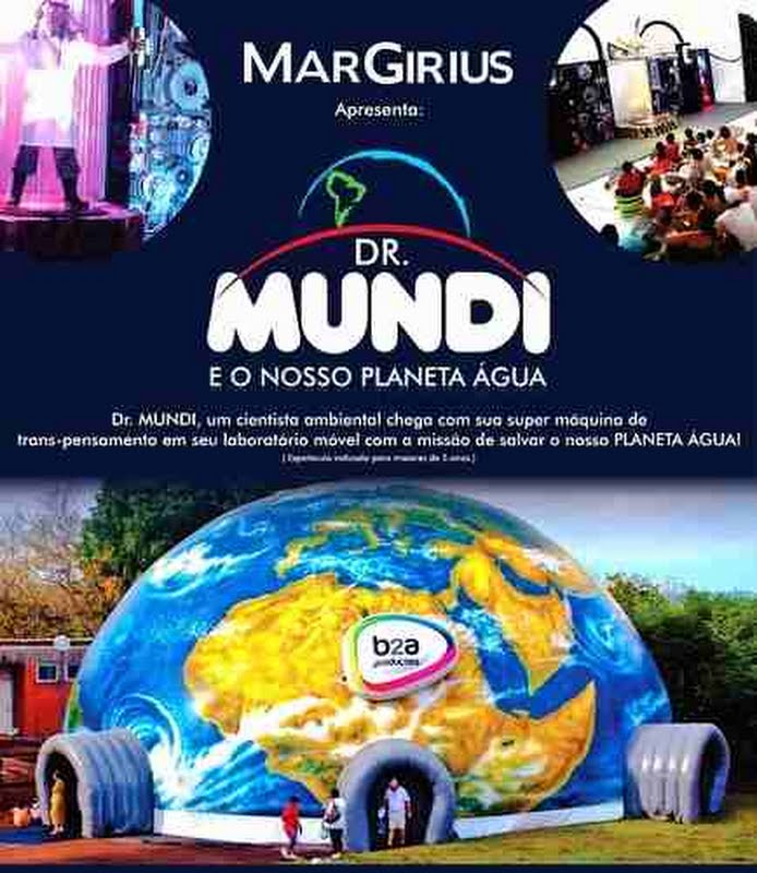 Na Semana Mundial do Meio Ambiente o Espaço MUNDI está em Porto Ferreira. Com patrocínio da Mar-Girius, apoio da Prefeitura Municipal e da Foz do Brasil, a peça Dr. Mundi e o Nosso Planeta Água será encenada de 05 a 09 de junho. Nos primeiros 3 dias as sessões serão exclusivas para alunos da rede pública de ensino. No final de semana, as sessões com entrada gratuita, serão abertas para toda a população. Crianças, jovens e famílias da cidade poderão conhecer o Dr. Mundi e suas dicas sobre economia do recurso natural mais precioso do nosso planeta: A ÁGUA!