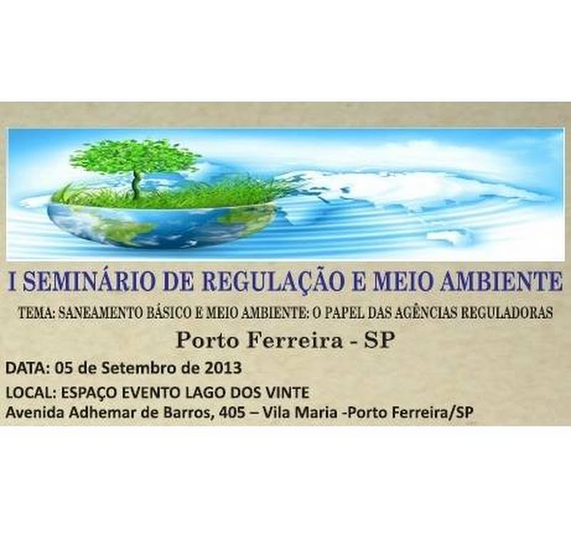 A Agência Reguladora do Município de Porto Ferreira promove no dia 05 de setembro, quinta-feira, a partir das 14 horas, o 1º Seminário de Regulação e Meio Ambiente, com o tema: “Saneamento Básico e Meio Ambiente: O Papel das Agências Reguladoras”.