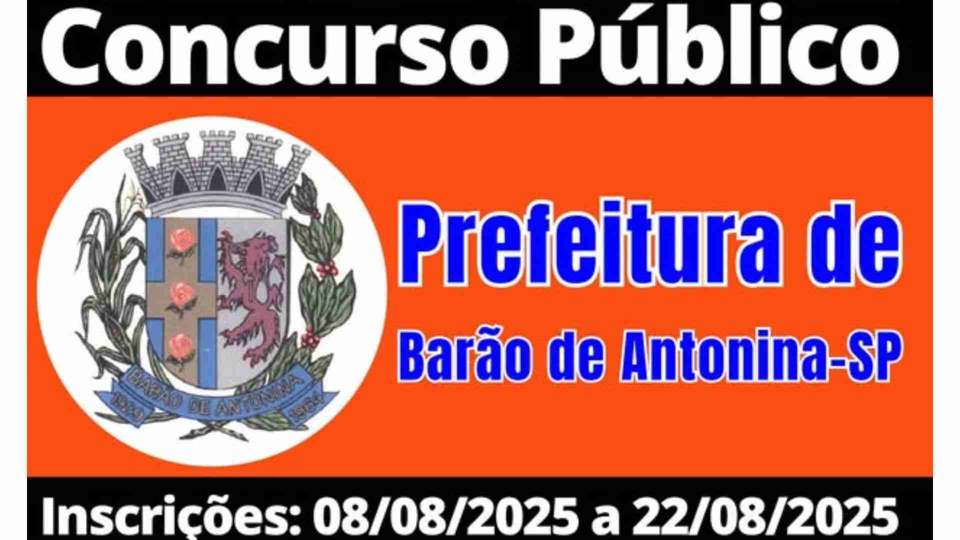 A Prefeitura de Barão de Antonina anuncia a abertura de um Concurso Público, com o objetivo de preencher 13 vagas e formar cadastro de reserva, para profissionais de níveis fundamental, médio/técnico e superior.