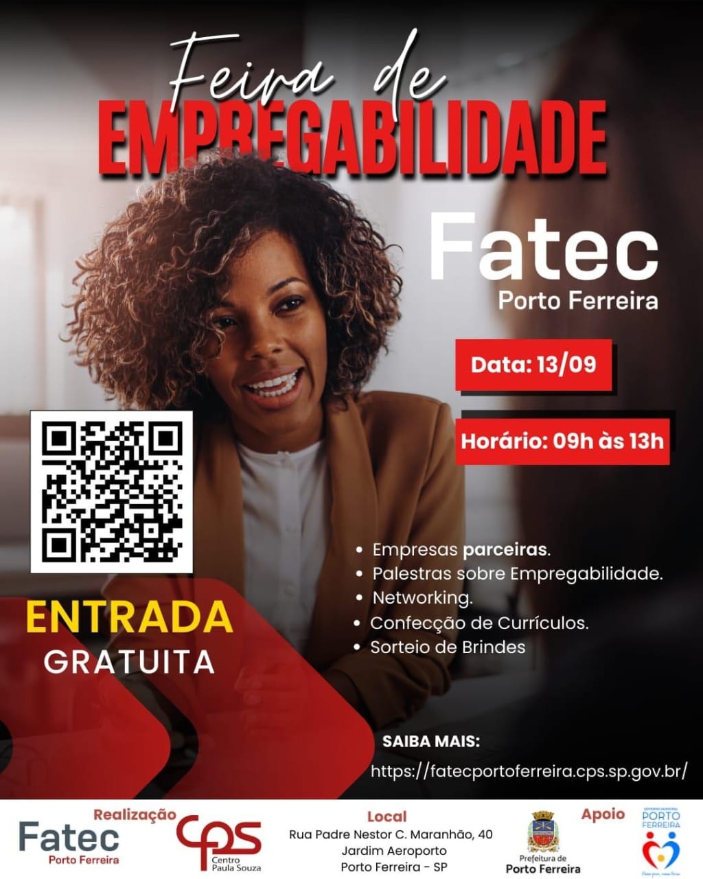 A Fatec Porto Ferreira promove no dia 13 de setembro a Feira de Empregabilidade, um evento voltado a estudantes e profissionais que buscam aprimorar suas oportunidades no mercado de trabalho. Com entrada gratuita, a feira acontecerá das 9h às 13h na unidade da Fatec, localizada na Rua Padre Nestor C. Maranhão, 40, no Jardim Aeroporto.