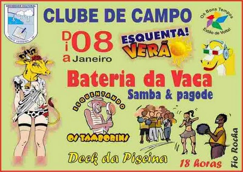 Neste sábado, dia 8 de dezembro, a partir das 18 horas no Clube de Campo das Figueiras teremos o “Esquenta Verão! Com apresentação da bateria do Bloco da Vaca.