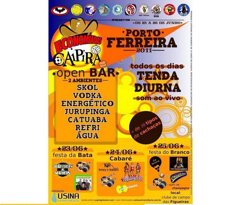 O Economíadas Caipira 2011 será realizada em Porto Ferreira, nessa semana, entre os dias 23 e 26 de junho. Trata-se de Jogos Universitários das faculdades que possuem os cursos de Administração, Economia e Contabilidade.