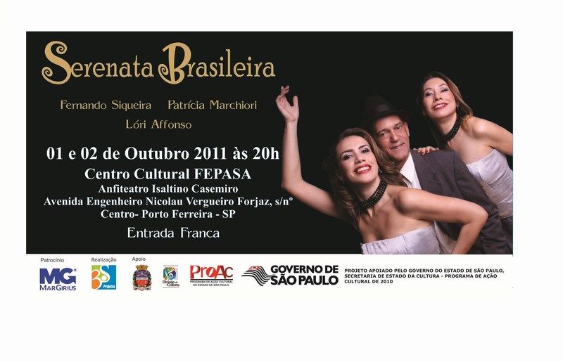 Com figurino inspirado nas décadas de 20 e 30 e repertório que revisita os clássicos que marcaram a época de ouro do rádio, o grupo Serenata Brasileira, de Campinas, faz apresentação em Porto Ferreira, no Centro Cultural FEPASA , nos dias 01 e 02 de outubro, às 20h, com entrada franca.