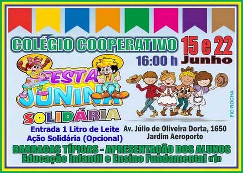 22/06 – a partir das 16h – apresentações dos alunos de 2º ao 5º Ano EF – na Unidade Jardim Aeroporto – Entrada 1 Litro de Leite (Ação Solidária Opcional).