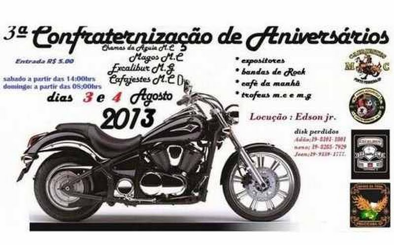 A 3ª Confraternização de Aniversários de moto clubes de Porto Ferreira acontece nos dias 3 e 4 de Agosto de 2013. O evento será realizado no Salão do Rotary Clube de Porto Ferreira, localizado na Via Syrio Ignatios, Jardim Aeroporto, com início no sábado (03/08) a partir das 14h00, e no domingo (04/08), a partir das 08 horas.