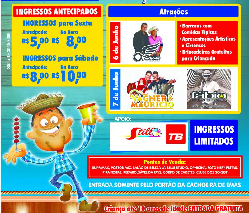 O ingresso para a sexta-feira (06/06) pode ser adquirido antecipadamente pelo valor de R$ 5,00, na hora será de R$ 8,00. O público está estimado em 4.000 pessoas.