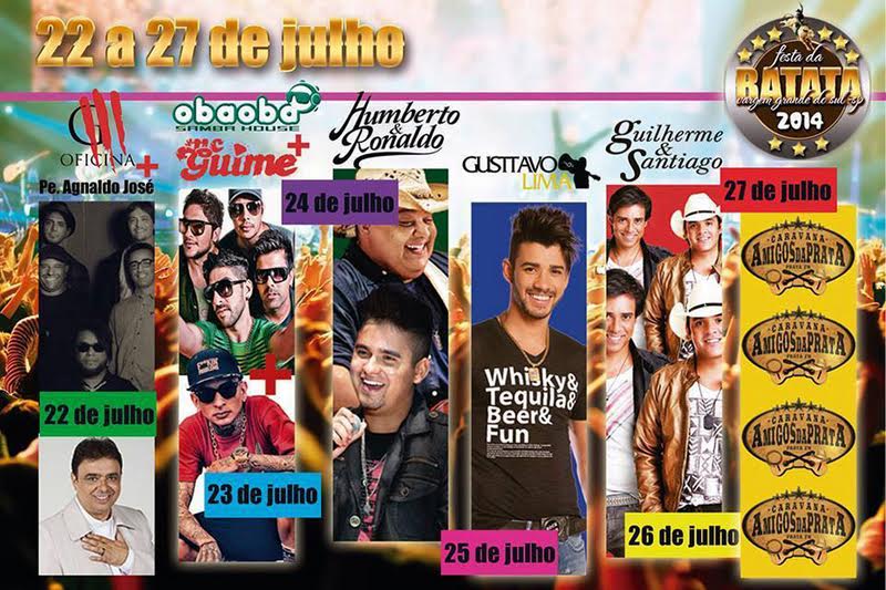 Com shows, feira agropecuária, rodeio, parque de diversão e ampla praça de alimentação com pratos típicos à base de batata, a Festa da Batata promete agitar Vargem Grande do Sul, cidade que fica na região nordeste do estado de São Paulo, e atrair um grande número de visitantes. Na programação, pelo terceiro ano consecutivo, uma etapa do Campeonato Nacional de Três Tambores. A 6ª etapa acontece de 24 a 26 de julho, no Recinto de Exposições ‘Christiano Dutra do Nascimento’.