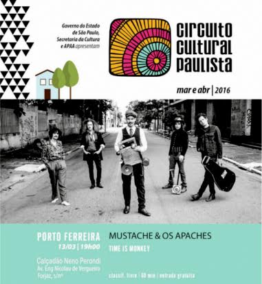 Em mais uma parceria da Prefeitura de Porto Ferreira com a Secretaria da Cultura do Estado de São Paulo e Apaa (Associação Paulista dos Amigos da Arte), o Circuito Cultural Paulista traz para Porto Ferreira neste domingo (13/03) a apresentação da banda Mustache & Os Apaches.