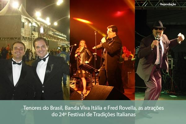 Os shows deste ano serão com a Banda Viva Itália, no dia 21, quinta-feira; Showman Fred Rovella, dia 22, sexta-feira, e Os Tenores do Brasil, Ricardo e Marcello, no dia 23, sábado.