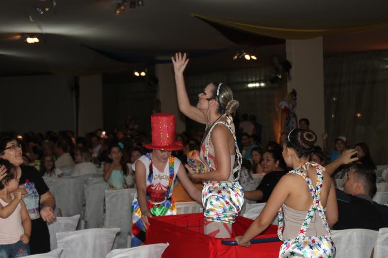 As bailarinas incorporaram perfeitamente o ambiente. Havia os palhaços, as equilibristas, os mágicos, pipoqueiras, malabaristas, contorcionistas, marionetes, as ajudantes de palco e também o apresentador.