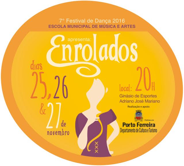 A Escola Municipal de Música e Artes realizará nos dias 25, 26 e 27 de novembro, a partir das 20 horas, no Ginásio de Esportes "Adriano José Mariano", o VII Festival de Dança, com o tema "Enrolados", baseado em um filme produzido pela Walt Disney Animation Studios, inspirado no conto de fadas alemão Rapunzel, dos Irmãos Grimm.