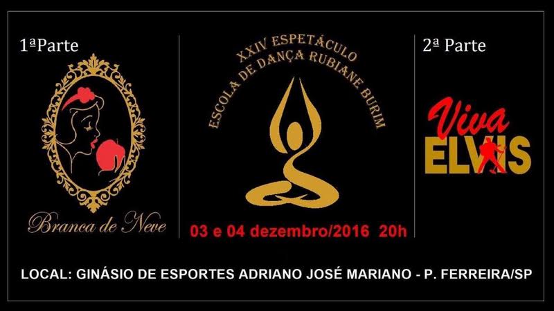 O XXIV Espetáulo da Escola de Dança Rubiane Burim. que acontece nos dias 3 e 4 de dezembro no Ginásio de Esportes Adriano José Mariano, às 20h00, apresenta os temas "Branca de Neve" e "Viva Elvis". A direção é de Rubiane Burim.