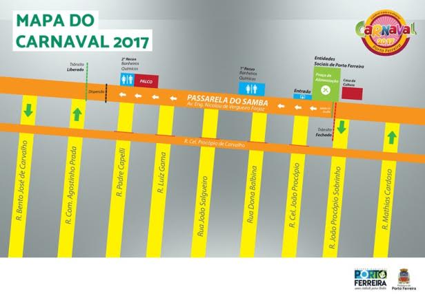 A passarela do samba será a avenida Engenheiro Nicolau de Vergueiro Forjaz, no Centro, entre as ruas João Procópio Sobrinho e Padre Capelli. Os desfiles acontecem das 19 às 23 horas.