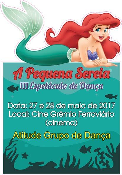 O Atitude Grupo de Dança realiza seu 3º Espetáculo de Dança com o tema: A PEQUENA SEREIA. As apresentações serão realizadas nos dias 27 e 28 de maio no Cine Grêmio Ferroviário Ferreirense, a partir das 19h30. Os ingressos já estão sendo vendidos na Ótica Central, Entre Cores Tintas e com os bailarinos no valor de R$ 15,00.