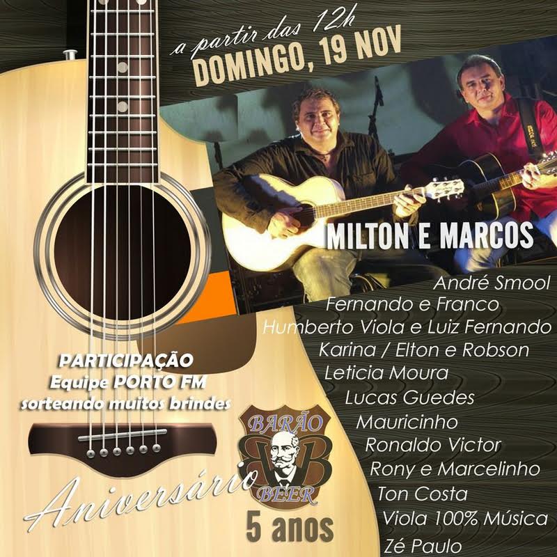 O Barão Beer está completando 05 anos e a festa é pra você amigo/ cliente , no domingo, dia 19 de novembro, a partir das 10h00, com cardapio a la carte e muita cerveja gelada.
