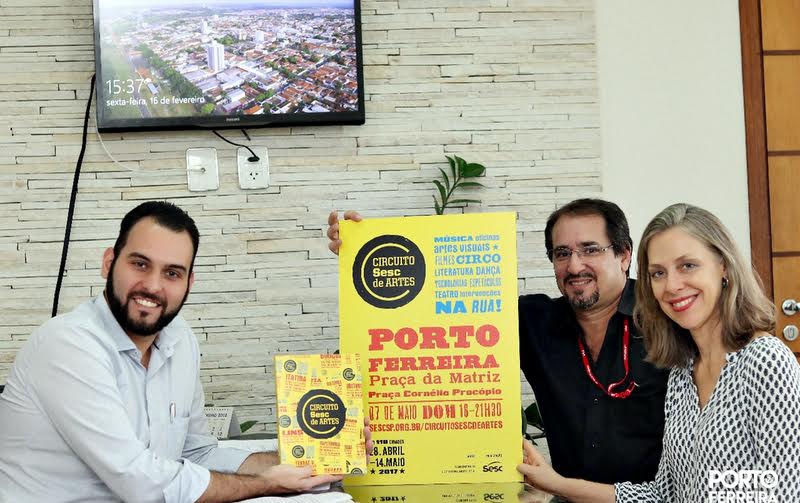 Na última sexta-feira (16/02) o prefeito Rômulo Rippa se reuniu com os representantes do Sesc São Carlos, Paulo Henrique e Vilma de Marchi, para receber a confirmação de que Porto Ferreira estará novamente na agenda do Circuito Sesc de Artes em 2018.