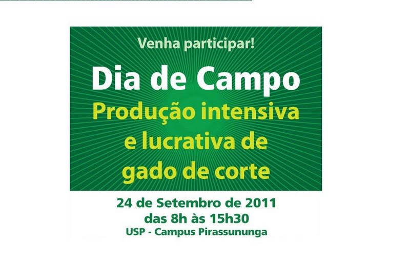 Acontece no dia 24 setembro, das 8h00 às 15h30, o Dia de Campo: Produção intensiva e lucrativa de gado de corte, na Faculdade de Medicina Veterinária e Zootecnia (FMVZ) da USP, no campus de Pirassununga.