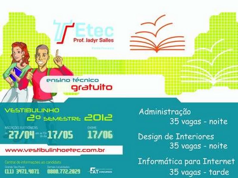 Os cursos oferecidos no vestibulinho 2º semestre 2012 são para a ETEC Prof. Jadyr Salles, de Porto Ferreira, são: